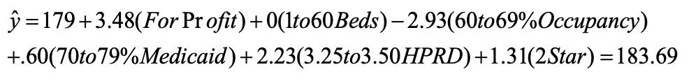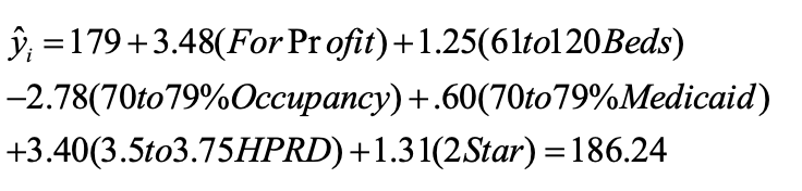 The regression models presented by the authors are most certainly intimidating for lay people without specialized training in intermediate or advanced statistics. Nevertheless, they simply state that variables such as Medicaid payment rates, Medicaid costs, and Medicaid payment-to-cost ratios can be predicted by computer algorithms (mathematical formulas) that calculate the effects of a group of predictor variables. For instance, the variables “ownership type,” “Number of beds,” “Occupancy rate,” “Medicaid payer mix,” “HPRD,” and “star rating” were each weighted based on their effects on the outcome variables.