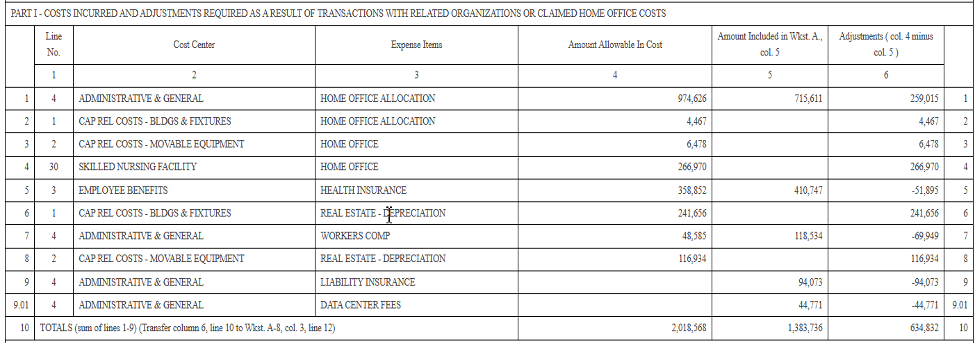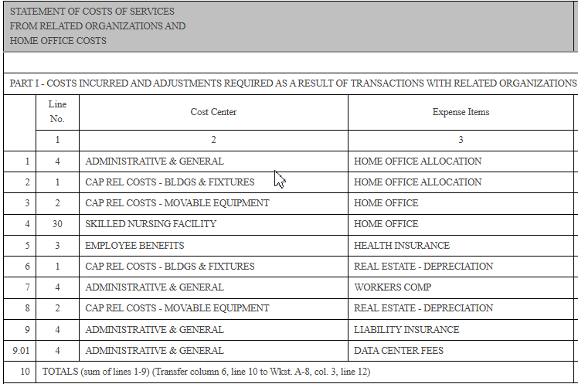 The clearest way to see this structural mismatch is to walk through a real nursing home cost report, where the numbers themselves reveal how far the cost construct diverges from the economic reality of the enterprise. Section II below, is a walkthrough of several 2004 cost report forms submitted by the largest nursing home corporation in the U.S. These forms are revealing: they show how the cost construct obscures rather than illuminates the economic reality of the enterprise.